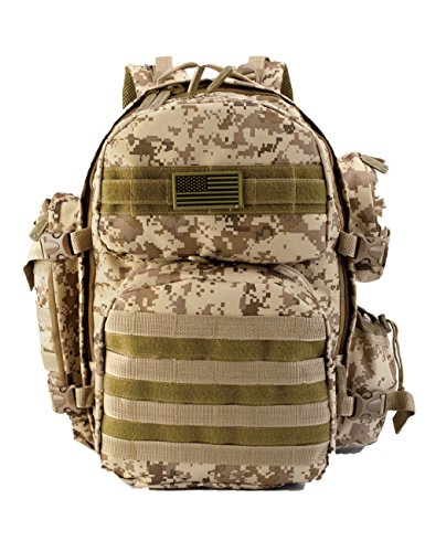 -. Feature : FREE EXTRA RUBBER PVC PATCH / Molle strap system: There are so many molle all over the bag, even at the bottom to be possible to hang your sleeping bag etc / Excellent storage. One bottle pocket, two side pockets, two front pockets, one back pocket / All the stitching and webbing, are used in military specification nylon material, longer straps slider, sleek, durable / Heavy duty adjustable padded shoulder straps, waist straps and sternum strap means it will adjust to fit you