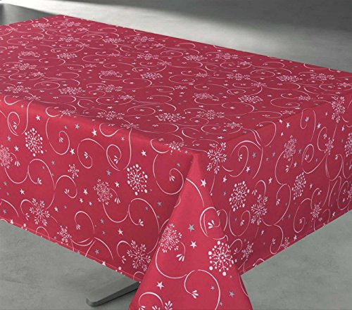 -. Feature : 58 x 78 inch tablecloths. / State of the art polyester. Water repellant, stain resistant. / Machine washable and iron free. / Use this beautiful table cloth for a Christmas tablecloth or year round.