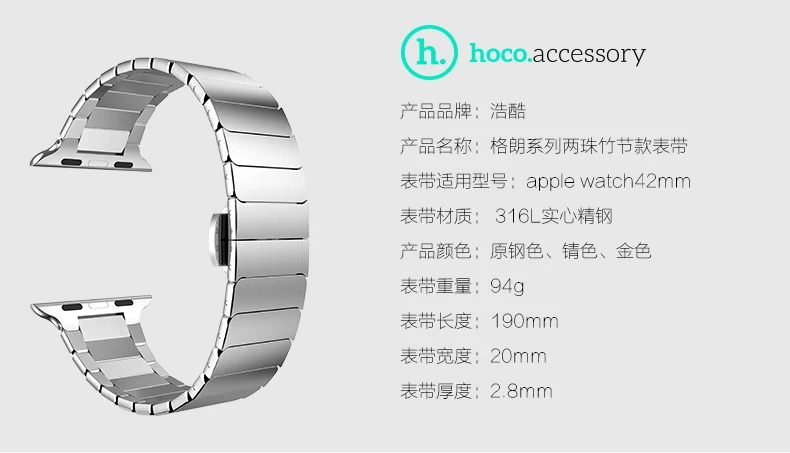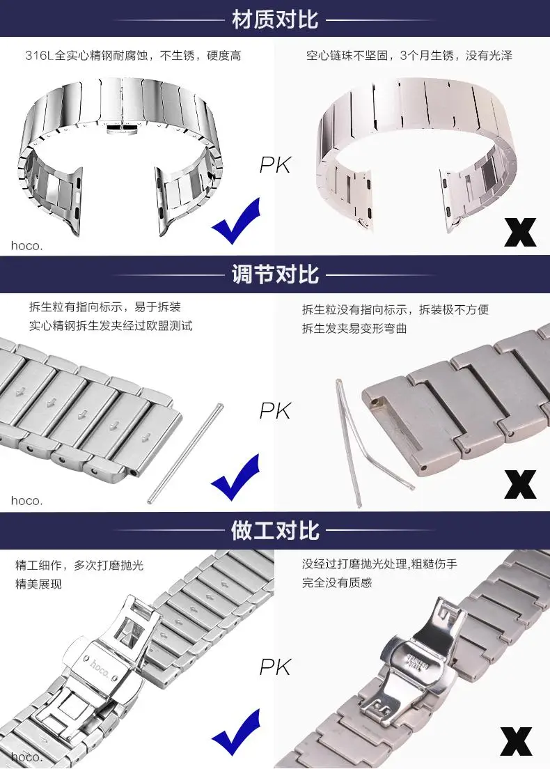 | [해외]원래 HOCO 럭셔리 나비 잠금 링크 팔찌 스테인레스 스틸 스트랩 시리즈 2 시계 밴드 apple watch 42mm 도구 |