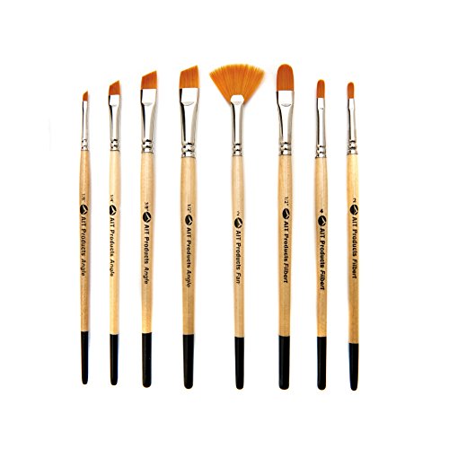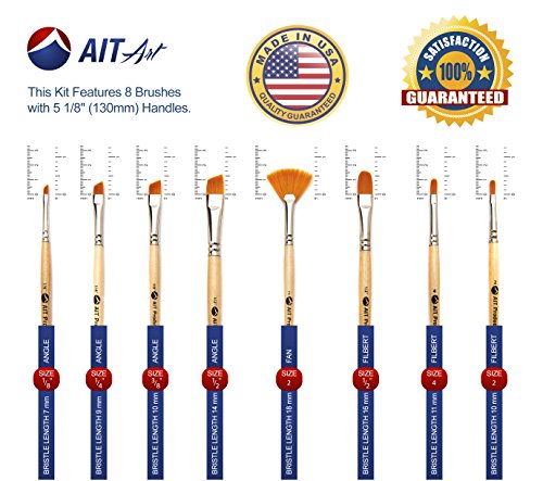 AIT Art Paint Brushes, Set of 8 Includes Angle Shaders, Filberts, and a Fan, Handmade in USA to Last Longer Without Shedding or Breaking, Allowing Painting with Brushes That Artists Trust to Perform