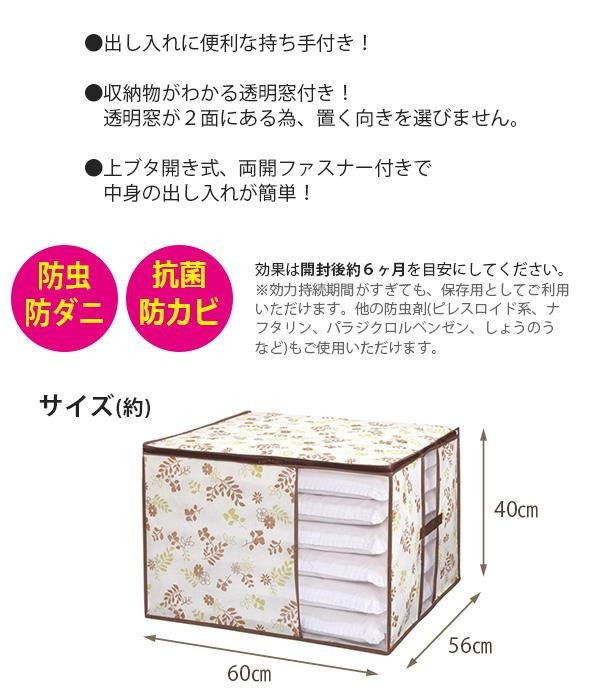 通気性のよい不織布を使用。抗菌・防カビ、防虫・防ダニ加工を施しています。ゴミやホコリをつけずに収納。 製造国:中国 素材・材質:本体生地:ポリプロピレン不織布窓:ポリエチレン 商品サイズ:(約)60×56×40cm 仕様:【収納のめやす】座ぶとん5~6枚 ※サプライヤー直送品 ご注文後3~4営業日後の出荷となります【商品名】STORAGE 収納用品 フロスト FL クッション・座ぶとん袋