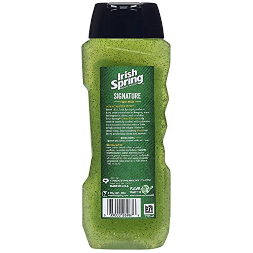 -. Binding : Health and Beauty -. Brand : Irish SP.R.Ing -. EAN : 0035000269676 -. Feature : Signature for Men, Formulated with Authentic Oat Extract / Exfoliating Body Scrub Body Wash Blend for a Deep Clean / Leaves Skin Feeling Clean and Smooth / Created for Healthy Looking Skin / Helps Keep You Feeling Fresh, Clean, and Confident -. Label : Colgate-Palmolive Co -. Manufacturer : Colgate-Palmolive Co -. Model : 10035000269673 -. PackageQuantity : 1 -. ProductGroup : Pantry -. ProductTypeName : BEAUTY -. Publisher : Colgate-Palmolive Co -. Studio : Colgate-Palmolive Co -. Title : Irish SP.R.Ing Signature for Men Clean and Scrub Body Wash - 15 fluid ounce -. UPC : 035000269676