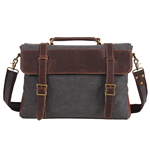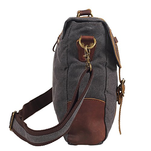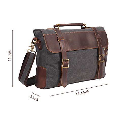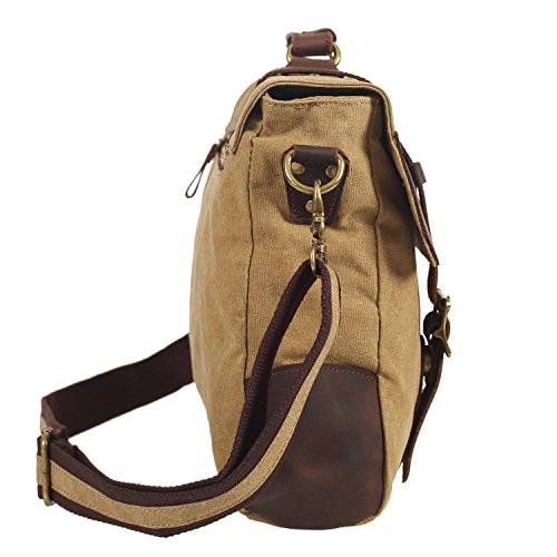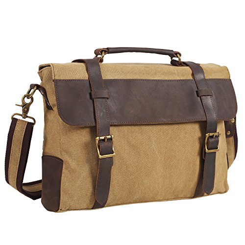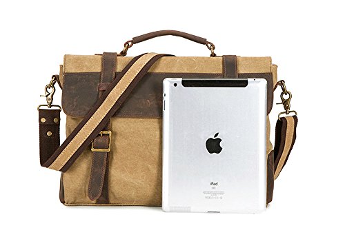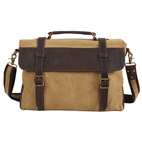 -. Title : DesertWolf Vintage Canvas Messenger Bag - Leather Shoulder Bag - Traveling Briefcase - Fit 14" Laptop