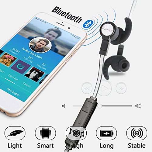 -. Feature : Ergonomic Design: Inclined silicone ear-tips reach deeper into the ear for a snug fit that stays fitting and feeling comfortable while running, biking, swimming, showering or at the gym. Enjoy the music during indoor/outdoor activities by IPX 7 standards. / Sweatproof/Waterproof: Novopal Bluetooth Earbuds allow for ultimate wearing comfort to match your active lifestyle like running, jogging, cycling, driving, camping, hiking, gym exercise, swimming, showering and other indoor/outdoor sports. / Magnetic: Built-in magnets let you attach the two headphones together when not using, and wear like a necklace around your neck, a very fashionable and convenient way to carry around when you do not use them. / Super Endurance: With our A grade battery, Kailuhong S128 Sports Wireless Stereo Bluetooth headphones give you a much-extended battery life: 7+ hours heavy music playing, 10+ on the phone talking, 250+ hours on standby. / Advanced Bluetooth: Equipped with the latest Bluetooth 4.1 technology and microphone - Instantly pairing with any phones, tablets, computers or electronic devices that with Bluetooth functions. It supports Apt-X codec that provides enhanced high-quality sound for compatible devices. Conveniently prepared for Hands-Free calling.