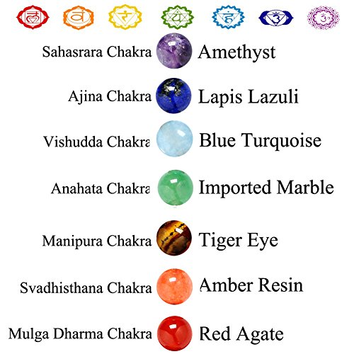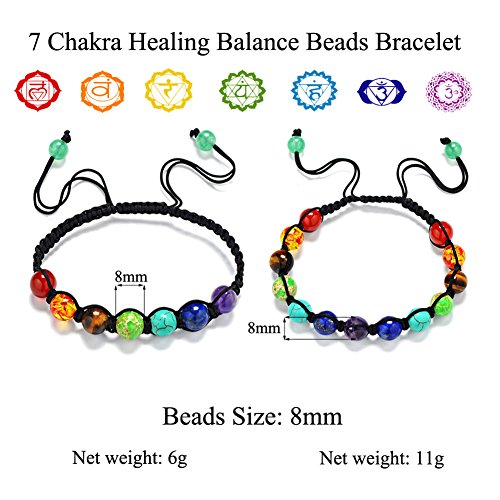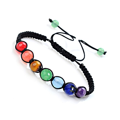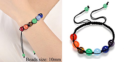 -. Feature : Material: Amethyst,Lapis Lazuli,Blue Turquoise,Imperial Marble,Red Agate,Tiger Eye,Amber Resin(Real natural stones,each bead is unique.I've handmade these healing 7 chakra stone bracelets with love and care) / DESIGN:India yoga philosophy holds that the chakras exist in the body,in charge of physical functioning.7 Chakra Stone Bracelet means a whole life cycle,balances all chakras,regulate bodily function,energizes every level of life.It cleanses the chakras and opens the intuition. / Great Meditation Bead,when you wear it,it promotes beauty,health,good luck,and healing.It is a great gift for your best friend,significant other,or anyone who enjoys handmade fine jewelry.This bracelet is the perfect reminder of how connected you are to the abundant universe! / Easy-to-wear,convenience,bery good matching element bracelet,unisex,good matching for men and women(This bracelet is the perfect reminder of how connected you are to the abundant universe!) / Size:This bracelet fits most wrist sizes,adjustable size using sliding knot closure,drawstring design