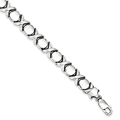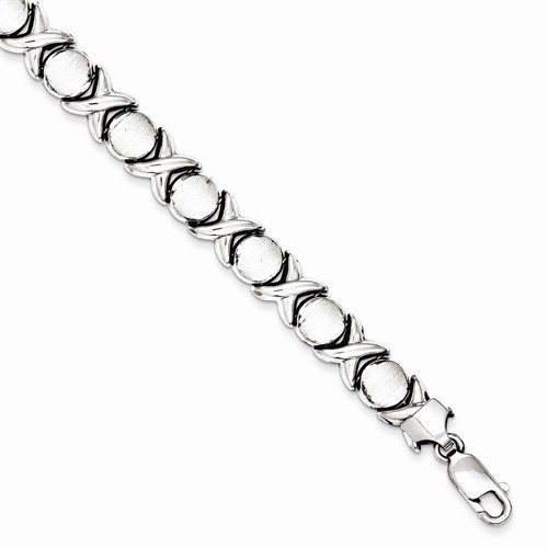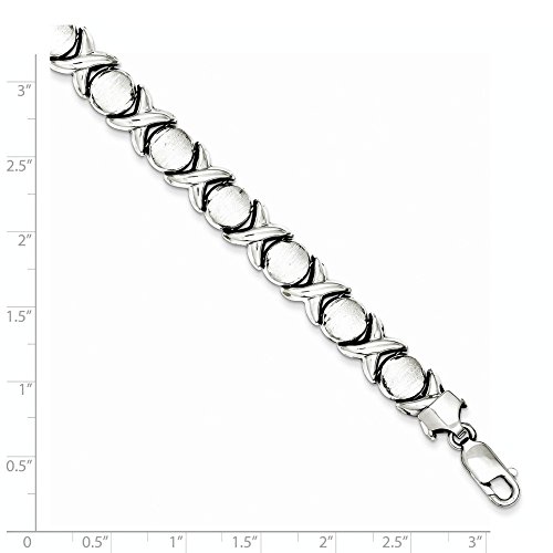 -. Title : Sterling Silver Hug & Kiss Polished and Brushed Rhodium 7in X's & O's Bracelet