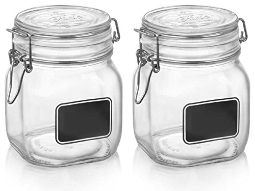 Bormioli Rocco: "Lavagna" (Chalkboard) Jars, "Fido" Line * 1.58 Pint (750ml) Capacity (Pack of 2) * [ Italian Import ]