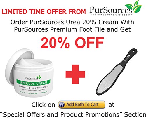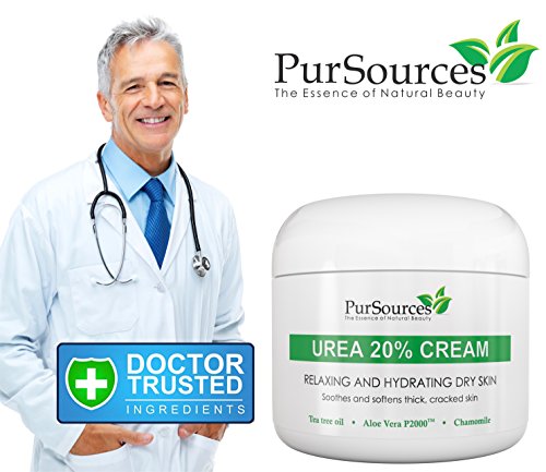 BEST FOOT CREAM FOR CRACKED HEELS - PurSources 20 % Urea Cream formulated to remove thick, callused areas, helps repair cracked heels by relaxing and hydrating dry skin and soles. The best choice for men and women of all ages. Formulated with the most potent and therapeutic ingredients, including pure Tea Tree Oil + Aloe 200X + Chamomile Extract and more!