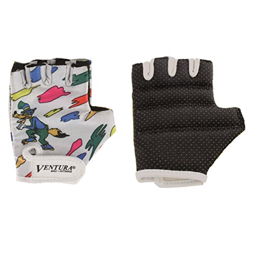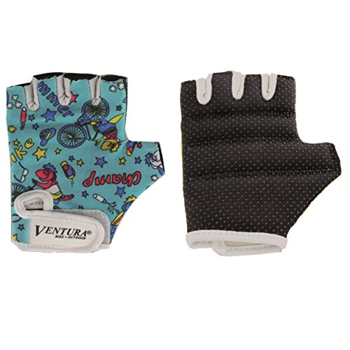 Studio : Ventura Publisher : Ventura Binding : Sports Product Description The Ventura Children's gloves offer superior grip at a low price. The Velcro closure keeps gloves snug on hands and Lycra construction remains breathable. Fun graphics let you ride in style. 0