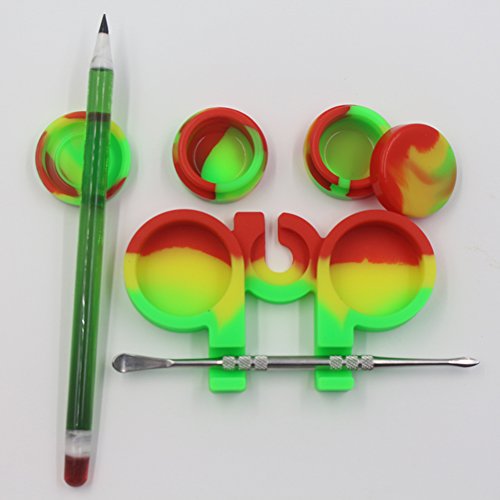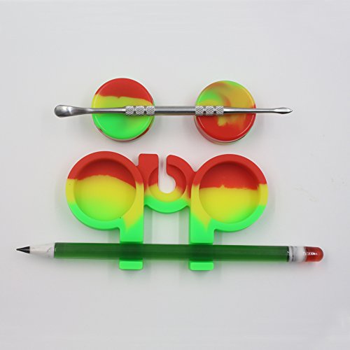 GOESKY Dab Carving Tool Nonstick Silicone Container Jars(3ml 2pcs) Container Holder(1) Glass Wax Dabber(1) Stainless steel Carving Tool(1) USA Edition FDA Grade Silicone (random corlor)