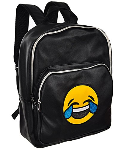 Studio : Olivia Miller Publisher : Olivia Miller Product Description Olivia Miller takes this backpack to the next level with a glittery emoji design. Olivia Miller backpack Faux leather construction Main compartment with interior zippered pocket External zippered pocket Padded adjustable shoulder straps Embroidered emoji graphic Measures 15" x 11" x 4" Imported 0