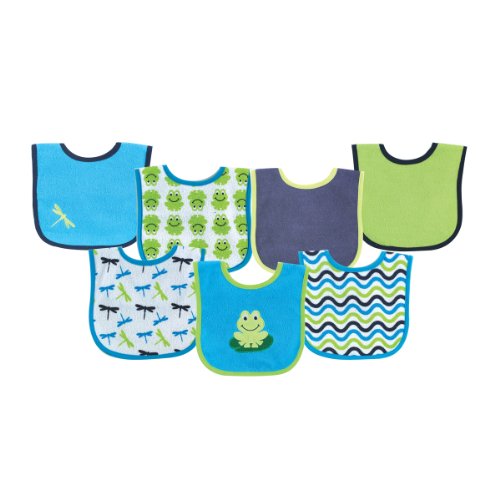 Luvable Friends 7-Pack Drooler bibs are a great value pack of bibs that will help protect your baby's clothing from drool and spills. Offering a large 6 x 7.5 inch coverage area, these bibs are great for drooling babies. The cotton blend front is soft and gentle against baby skin, while offering a 100% Waterproof backing to protect baby's cloths from wetness. Machine washable for easy cleaning, these bibs have adorable appliques that makes them perfect for every occasion.Feature