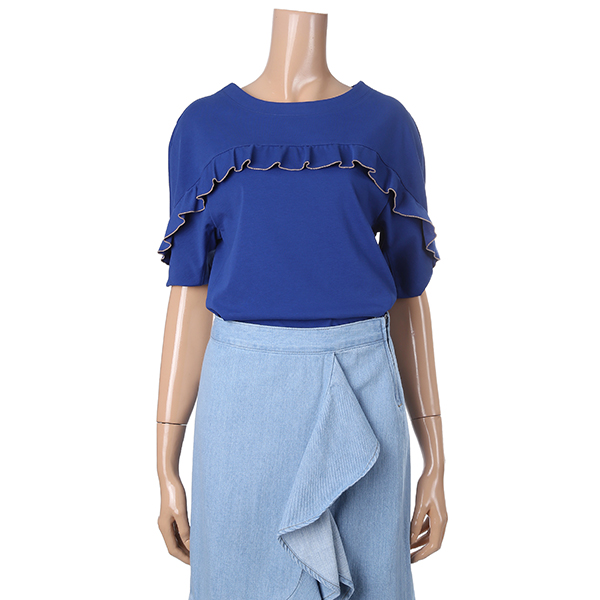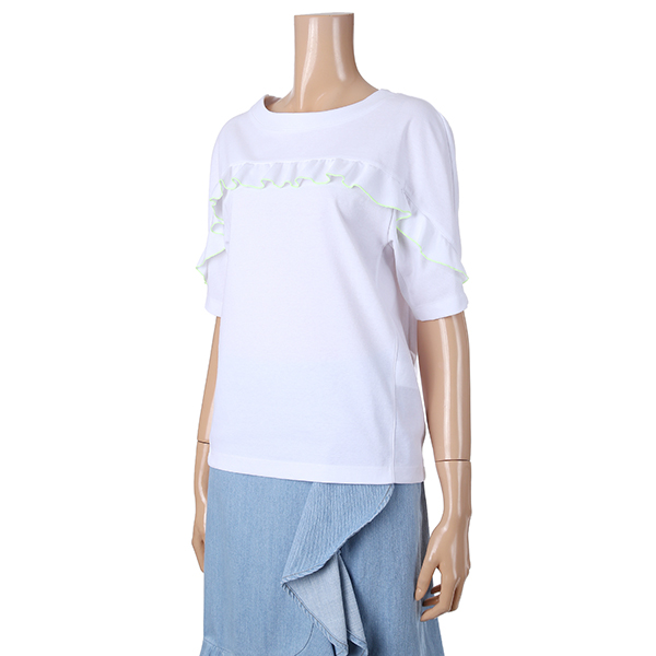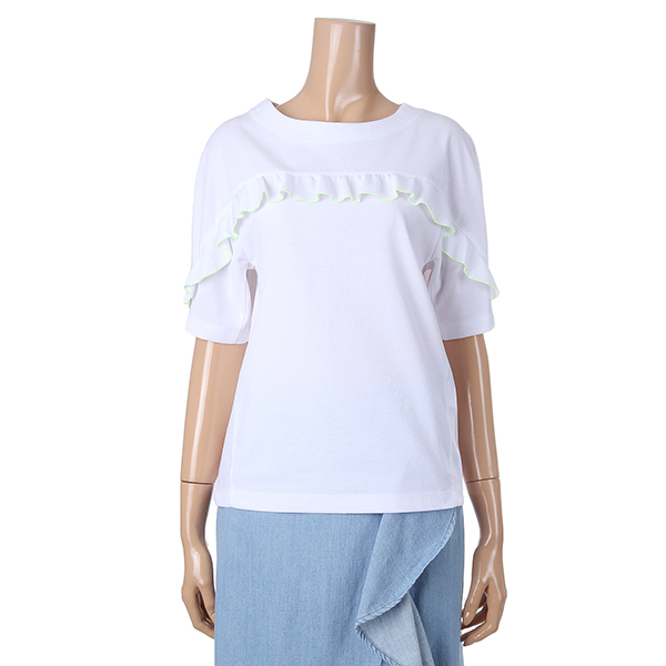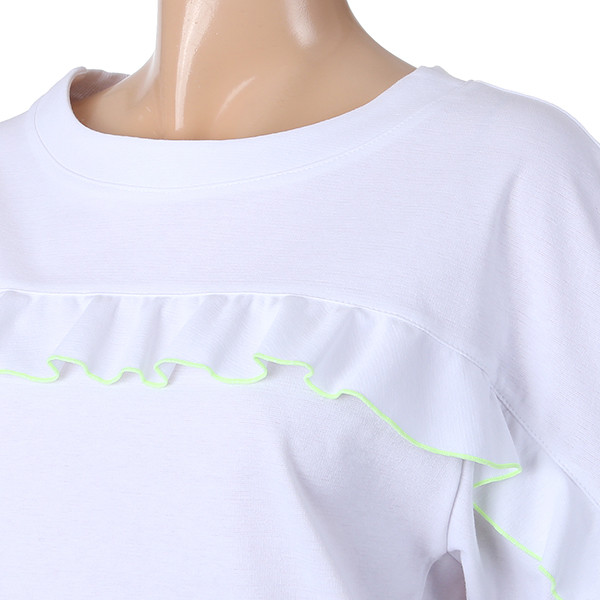 깔끔한 라인에 전면 프릴 디테일이 귀여운 여성스러운 티셔츠 제품입니다