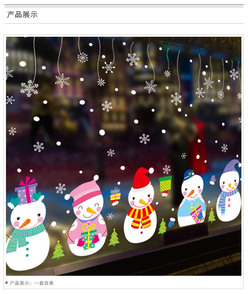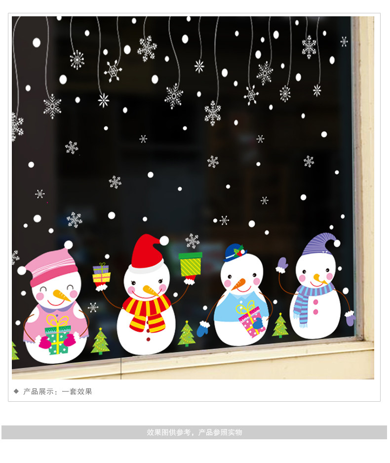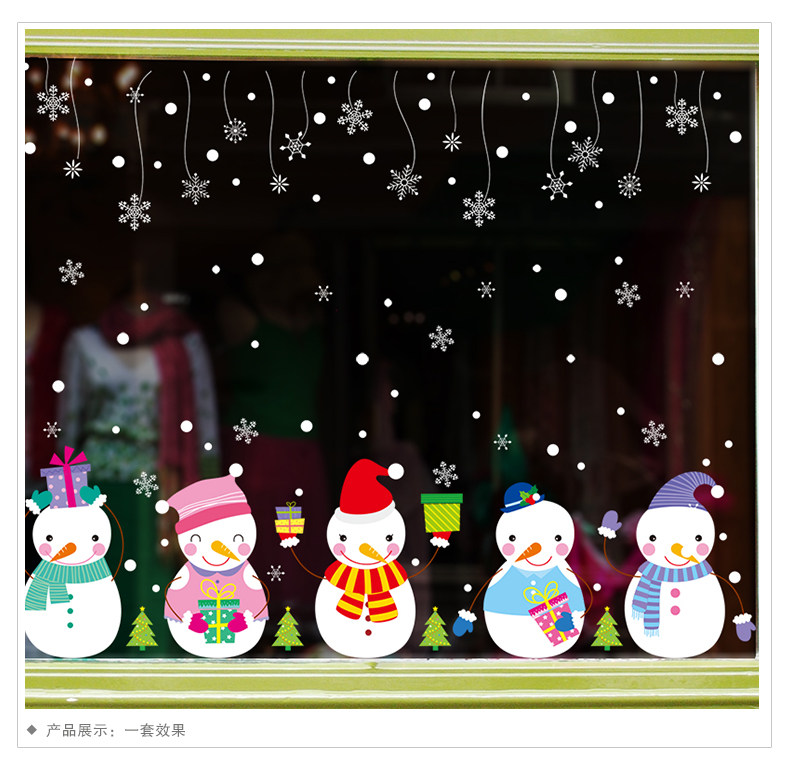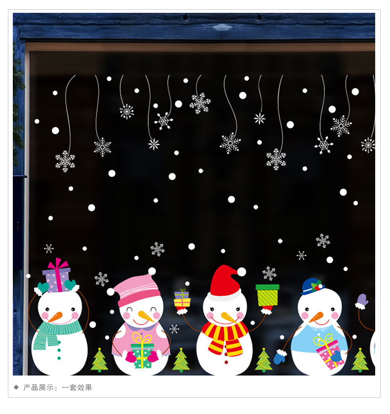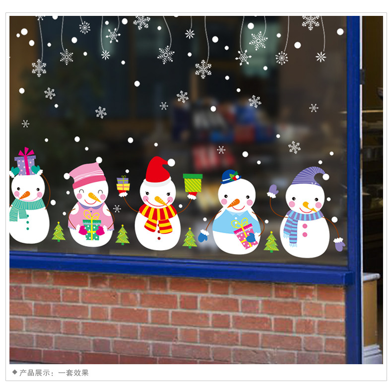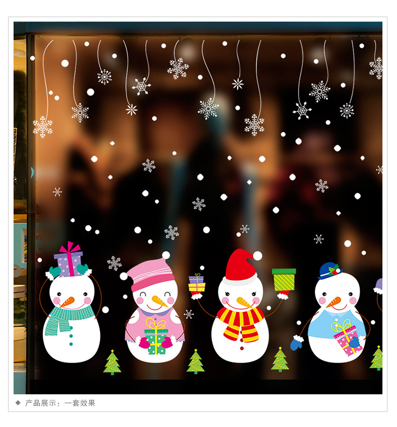 圣诞节饰品场景布置创意可爱卡通开业装饰橱窗气氛墙贴雪人的礼物