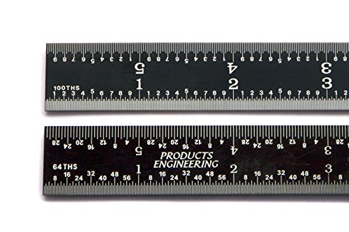 PEC Tools 12" precision 16R rigid ruler Black Chrome "High Contrast" 1/50, 1/100, 1/32, 1/64