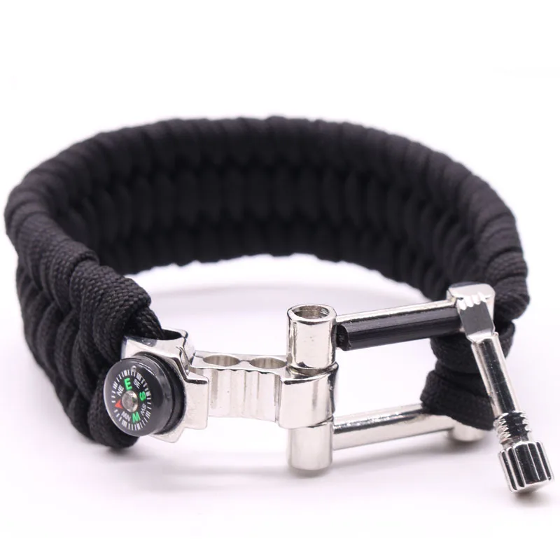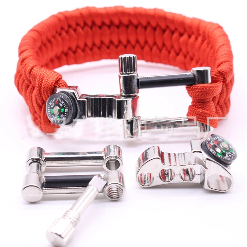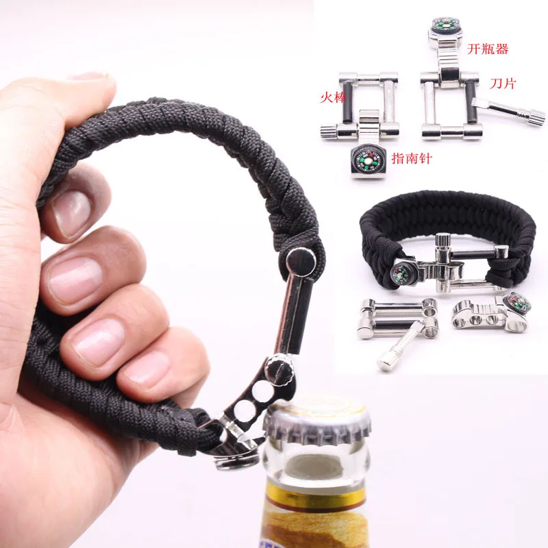 Travel reserve wilderness survival bracelet: if necessary, can be opened as a rope (umbrella rope diameter of 4 mm, length 3.6 m to 3.8 m) for trailers, first aid. The materials used are special umbrella rope, and the sea with the same rope, with corrosion resistance, anti-aging, etc., single rope pull at 280 pounds or so!
