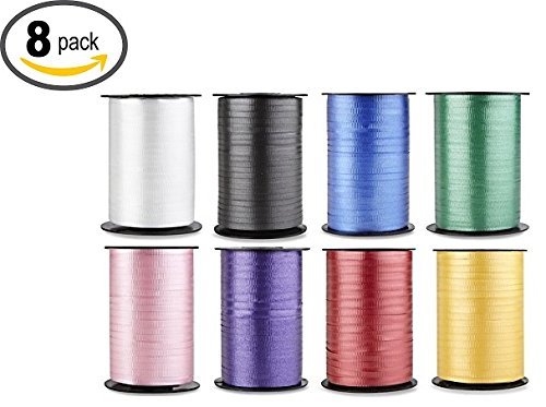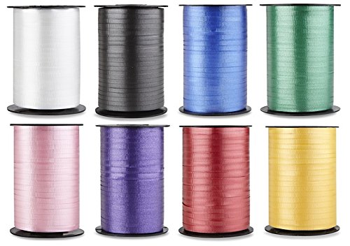 - Assortment pack of 8 rolls of curling ribbon, Each roll is 500 yards.