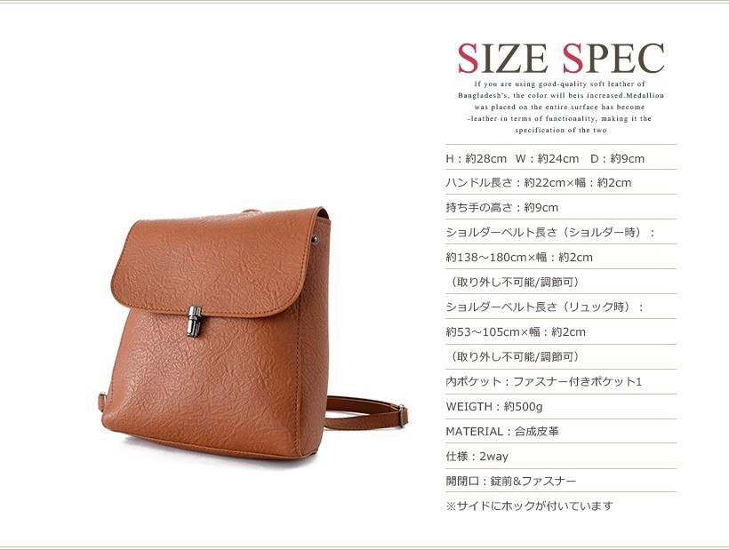 | サイズ | 高さ:約28cm / 幅:約24cm / マチ:約9cm |