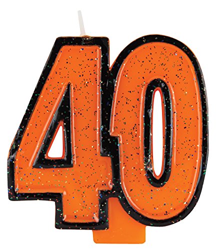 Creative Converting Numeral with Glitter Birthday Cake Candle, 40, Orange