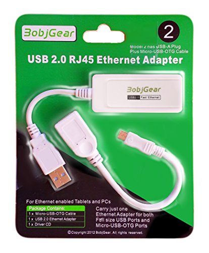 BobjGear USB to RJ45 Ethernet Adapter and Matching Micro-USB-OTG Cable for Android Tablets, Chromebooks, UltraBooks, Windows, Linux, Mac, Chrome OS, Android TV Sticks; Model 2 (USB-A and OTG Cable)
