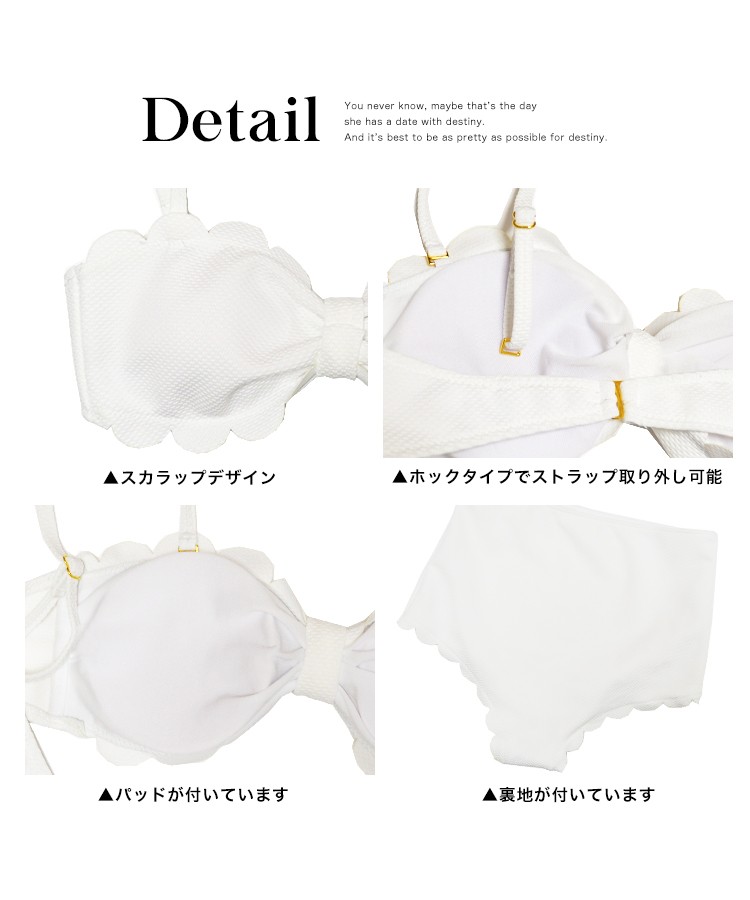| 商品特徴 | LAVIA(ラヴィア)から新作のプチプラ水着が入荷しました。ビーチやpoolで良く映えるホワイトカラーの水着は一番のモテカラー! 大人なフリルで可愛いくて清楚な印象に!バンドゥタイプはバストラインを綺麗に、そして盛ってくれます。ハイウェストショーツで体系もカバーしてくれます!取り外し可能なホルターネック&バンドゥビキニの2wayで着こなしができます。バックスタイルはホックタイプなので紐が緩む心配もなく着れます。 |