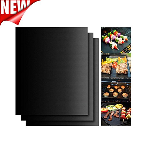 Grill Pad,HmlaiTeflon Non-Stick BBQ Magic Grill Mat Perfect for Baking on Gas Heat Resistant Non-stick high temperature barbecue mats(Size:40x33x0.002cm) (3)