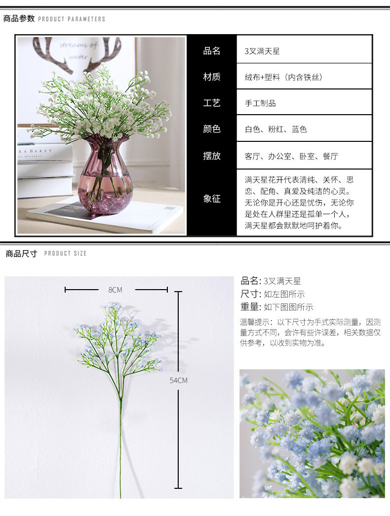 󰄬创意满天星假花仿真花摆件家居客厅室内摆设餐桌花瓶装饰花艺花卉