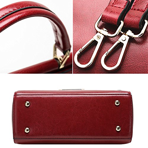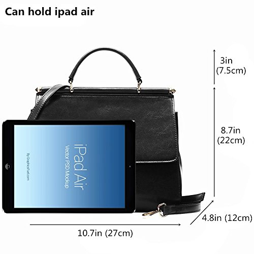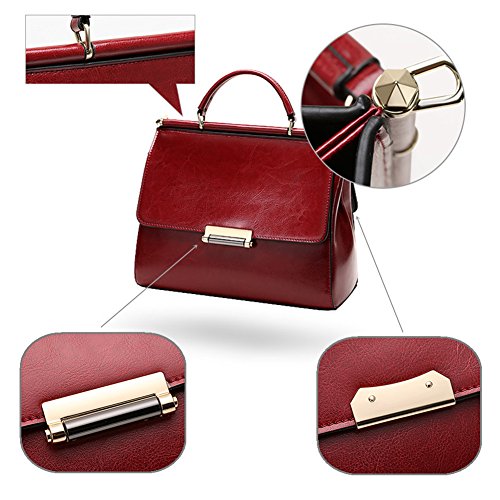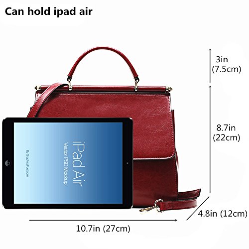 -. Feature : MATERIAL: Cow Leather / CLOSURE: Magnetic Closure & Top Zipper Closure; WEIGHT: About 1.58 pounds/0.72KG / DIMENSIONS: 10.7"W x 8.7"H x 4.8"D, Height of Handle: 3", Adjustable Strap Length: 37"~45" / POCKETS: Two generous main pockets which can hold ipad (9.7"), A5 note,etc; One Inner Zipper Pocket for wallet or cell phone; Two interior open pockets for keys/cards; / FEATURES: 1.Both sides are available at your pleasure 2.Flap over with magnetic closure. 3.The bottom is protected by four metal rivets from abrasion.4.Gorgeous look,Classic wine red.You can use it in any occasions like casual daily,work,dress party,outdoor,business casual,formal etc.