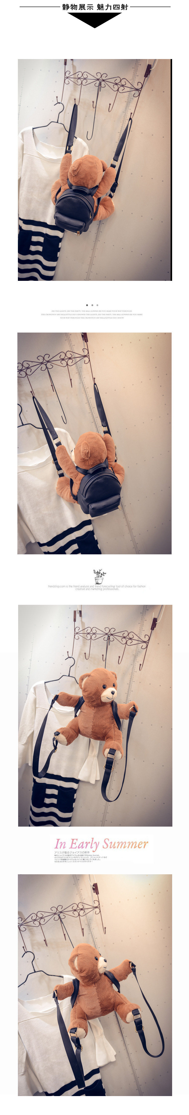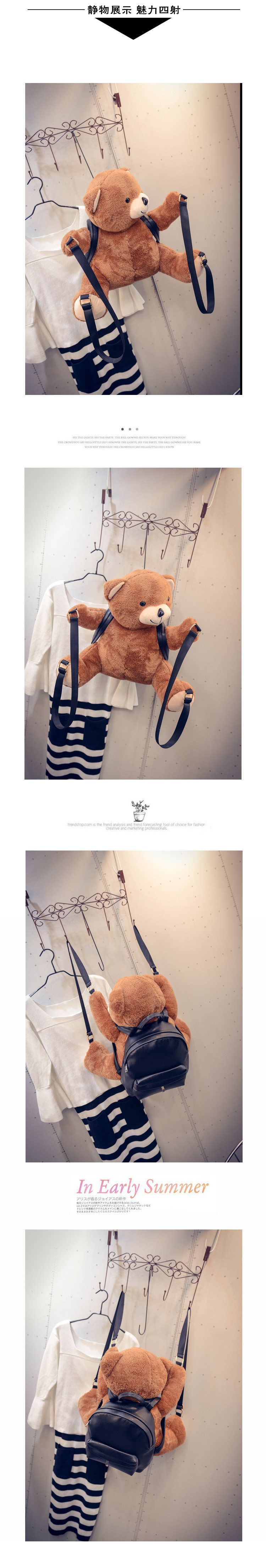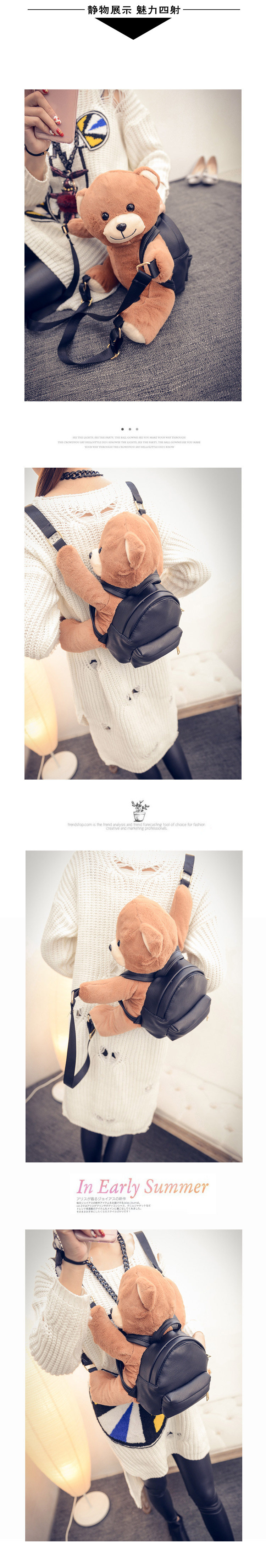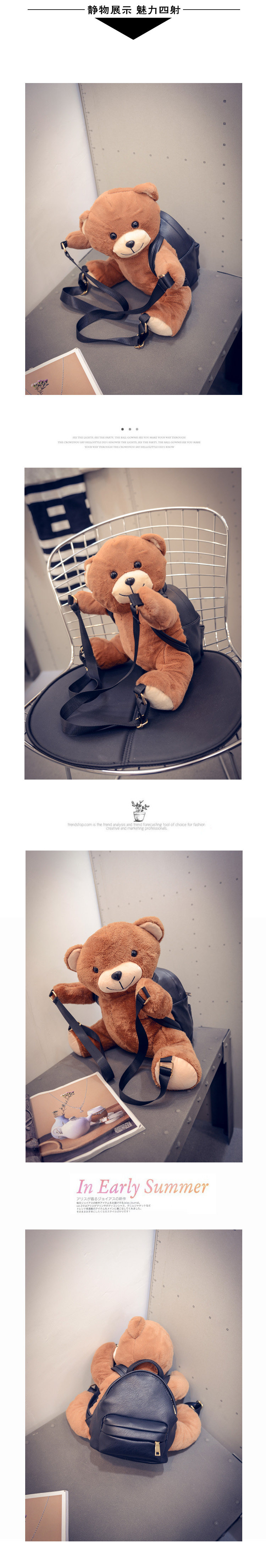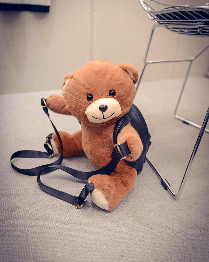 秋冬新款莫斯奇诺同款超萌可爱毛绒小熊双肩包真皮趴趴熊背包