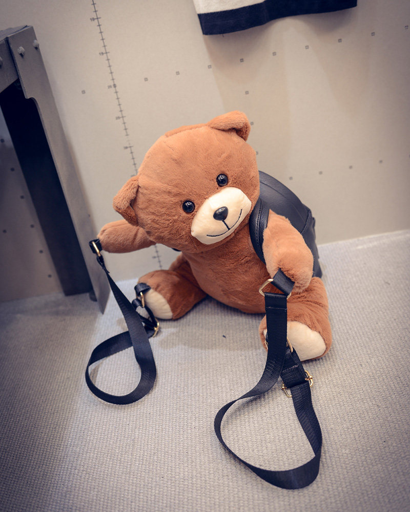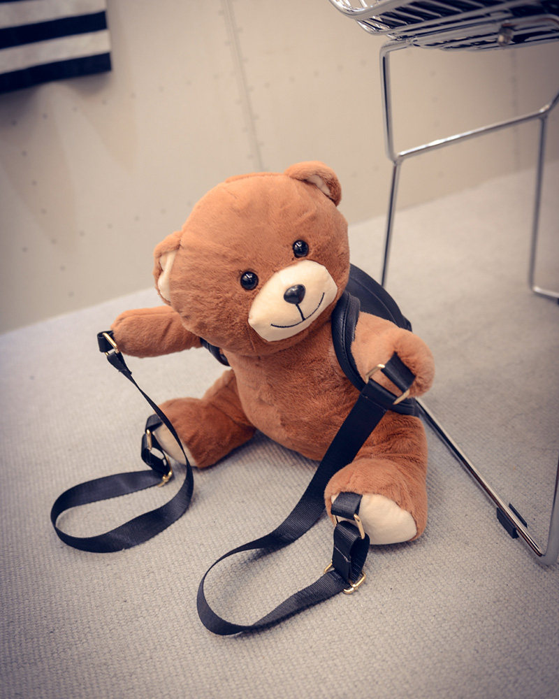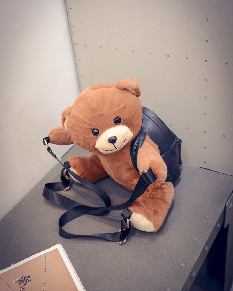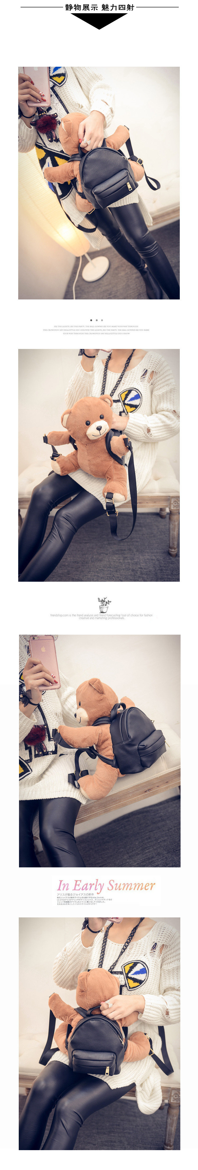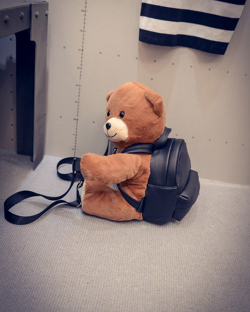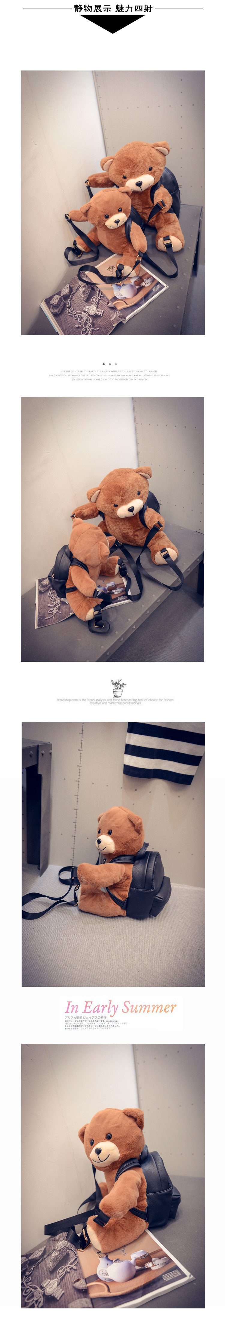 秋冬新款莫斯奇诺同款超萌可爱毛绒小熊双肩包真皮趴趴熊背包