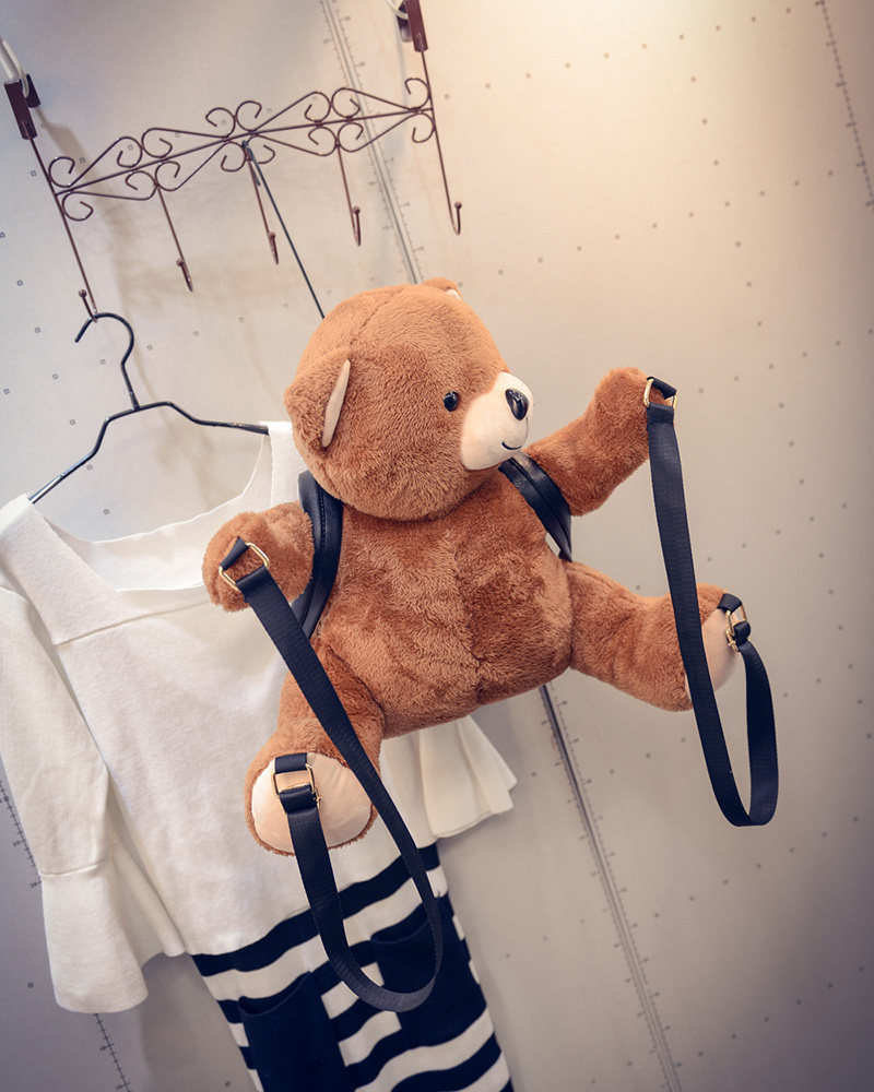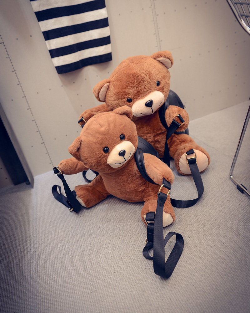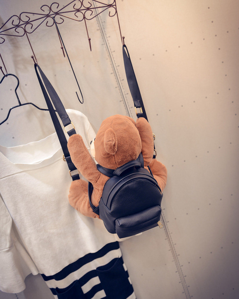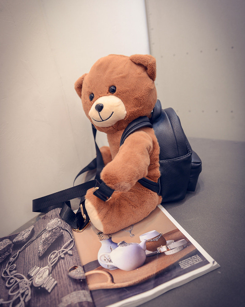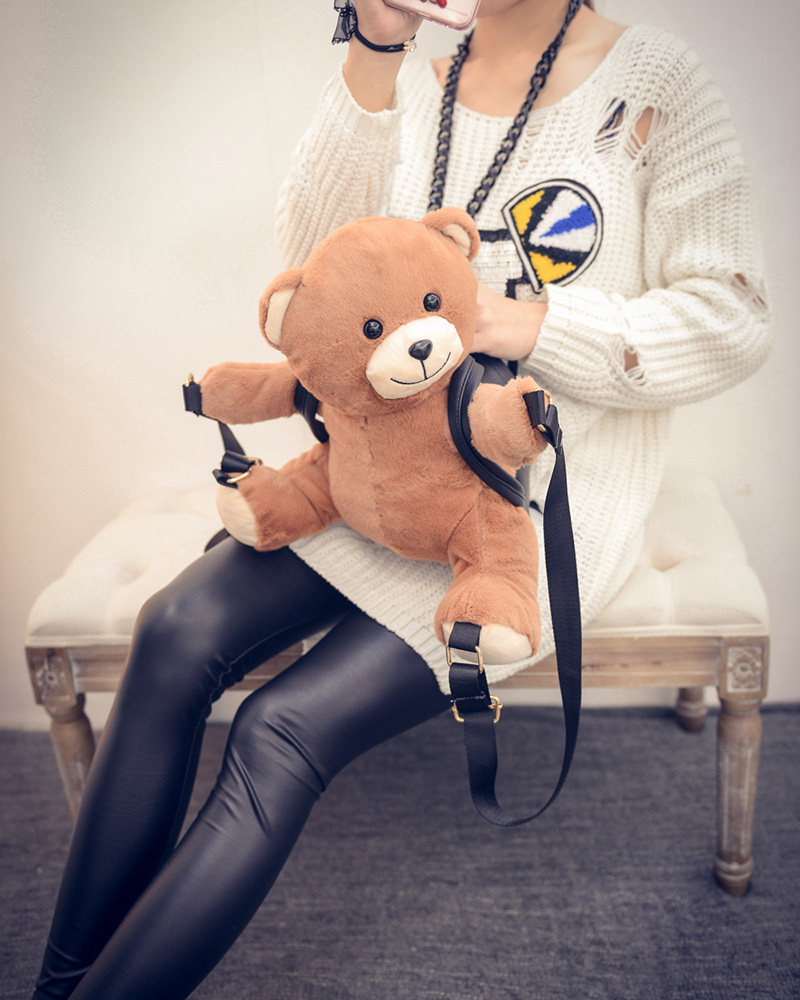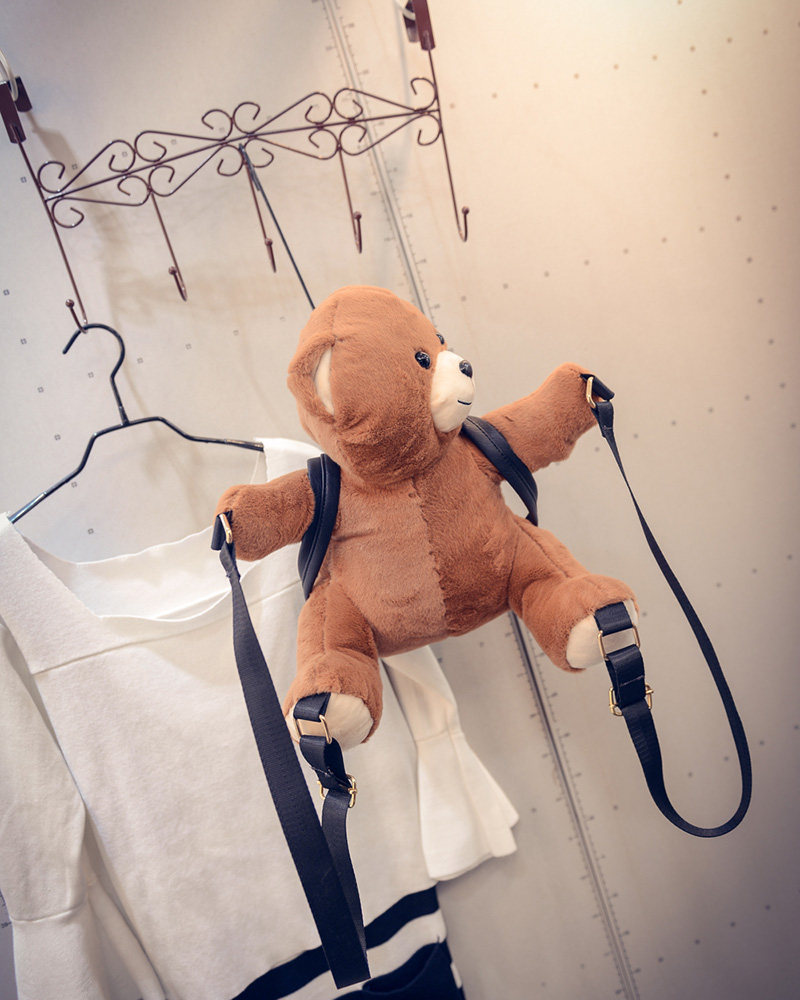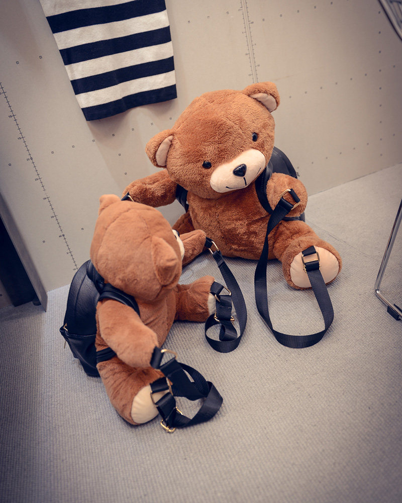 秋冬新款莫斯奇诺同款超萌可爱毛绒小熊双肩包真皮趴趴熊背包