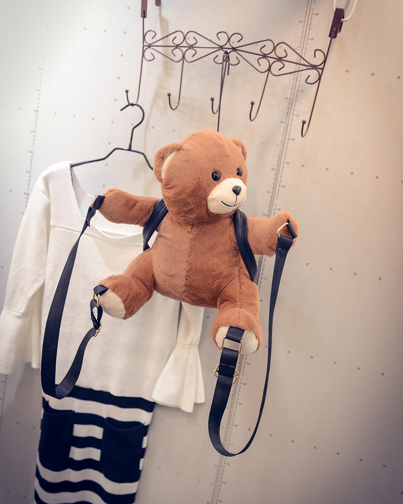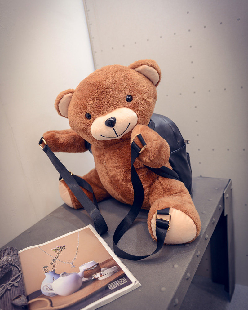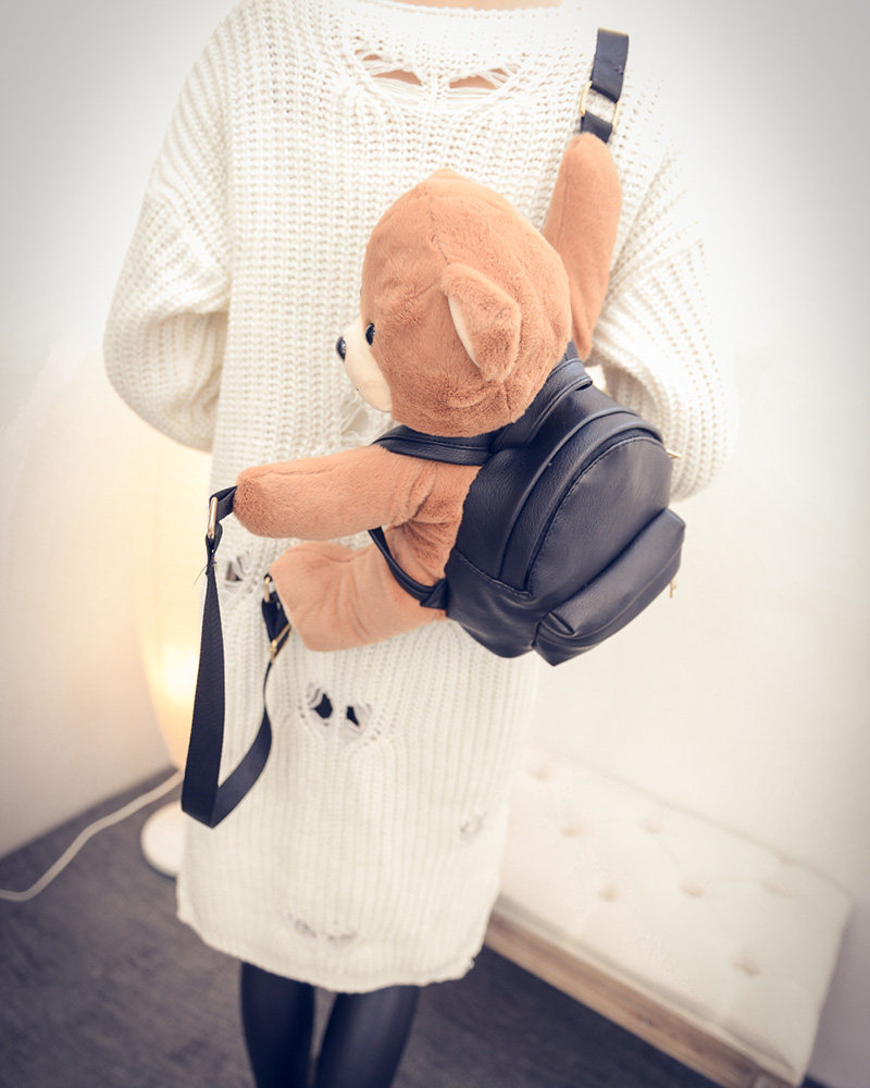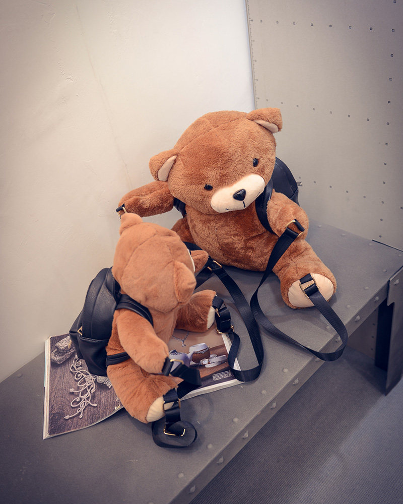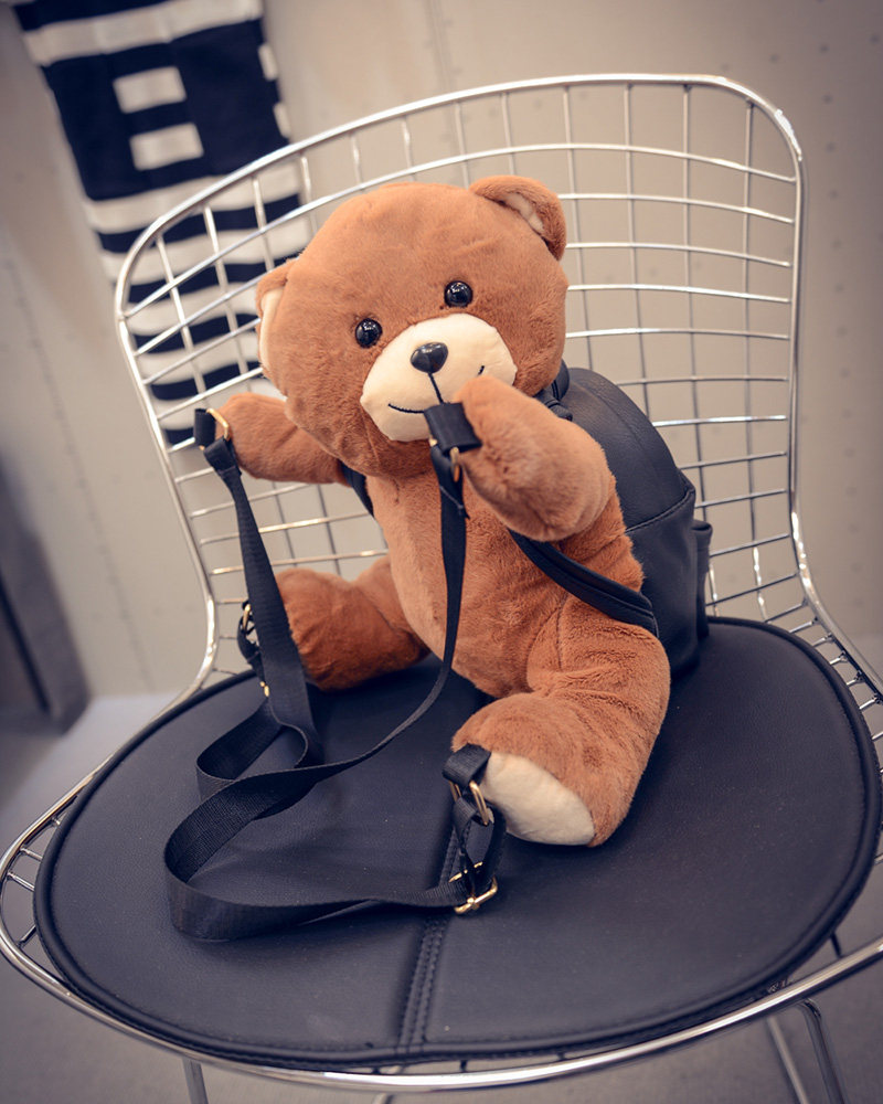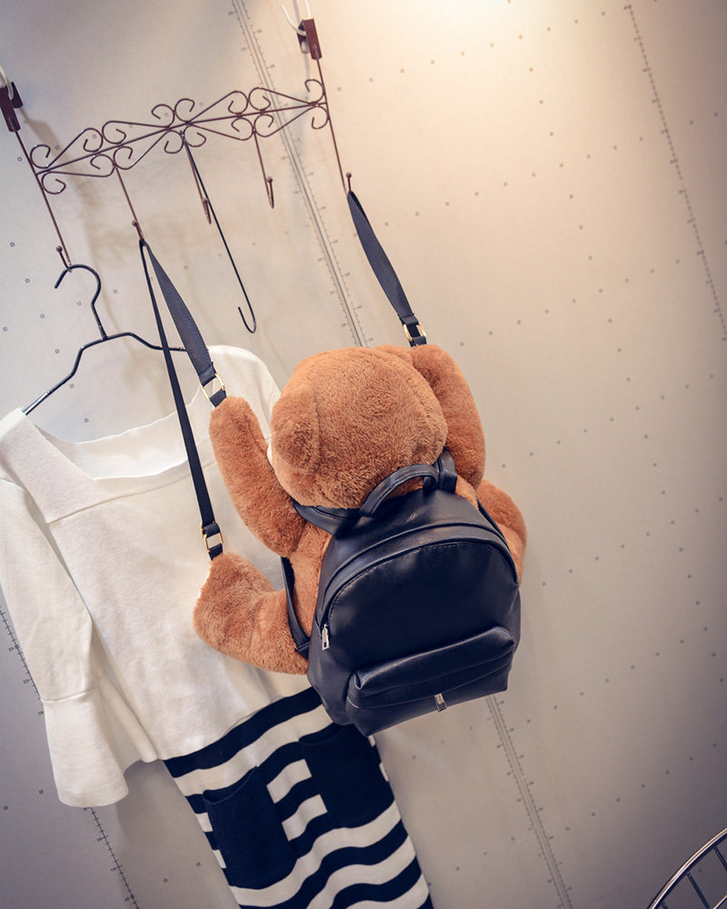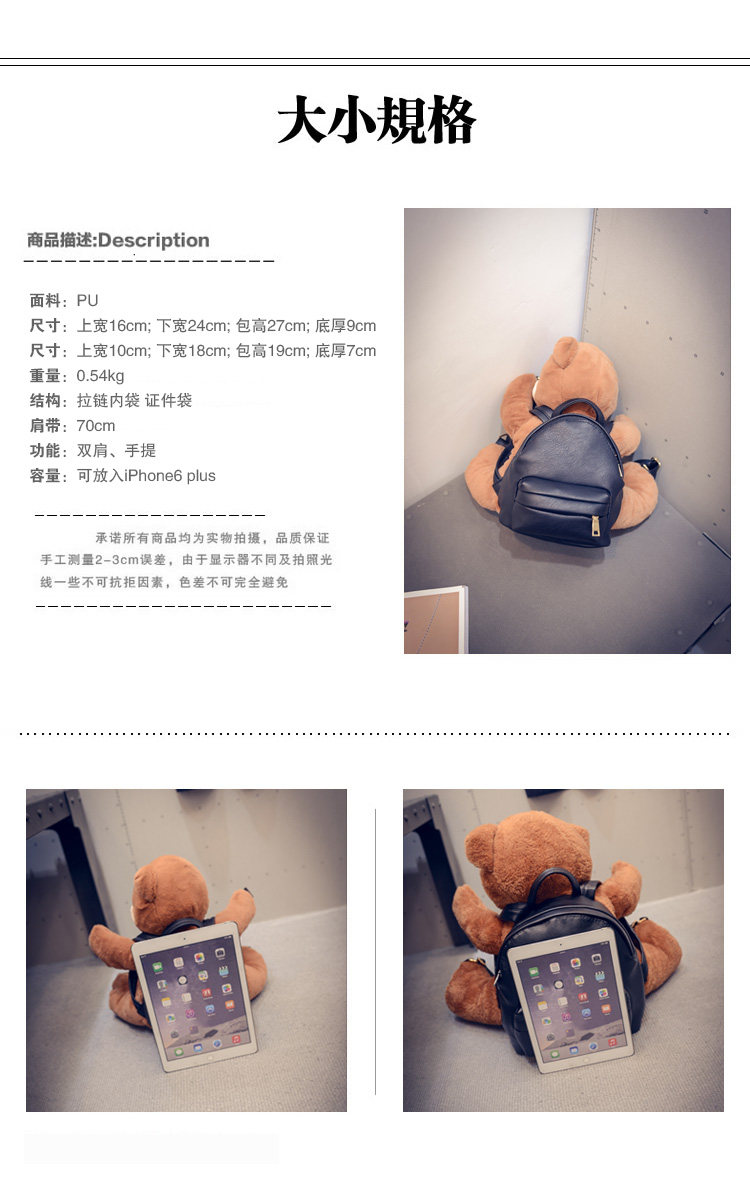 秋冬新款莫斯奇诺同款超萌可爱毛绒小熊双肩包真皮趴趴熊背包