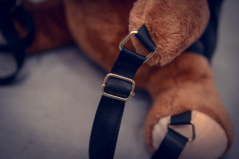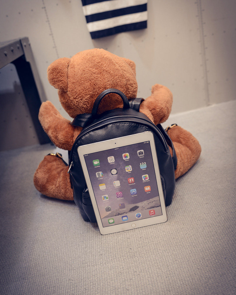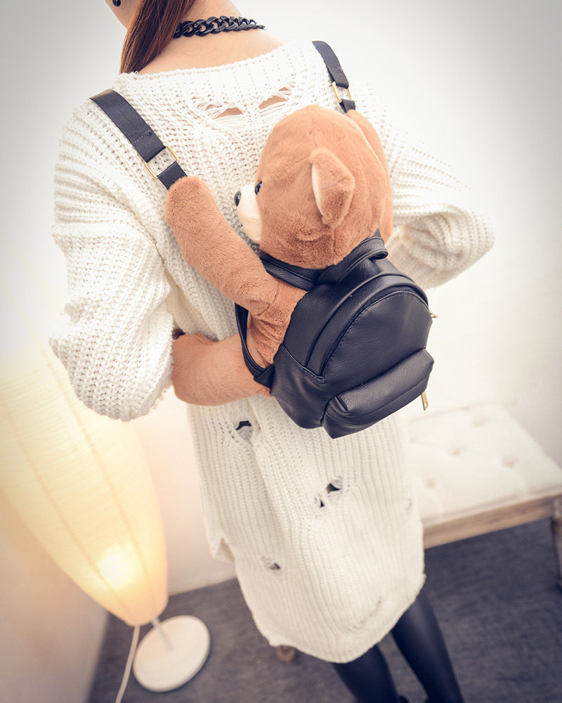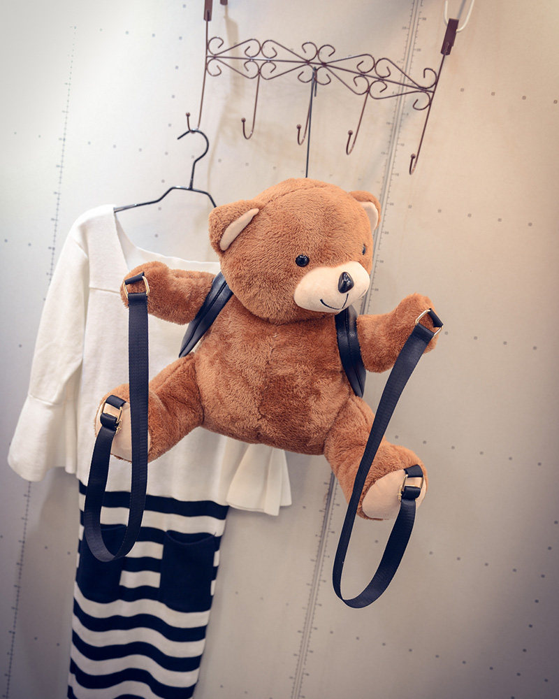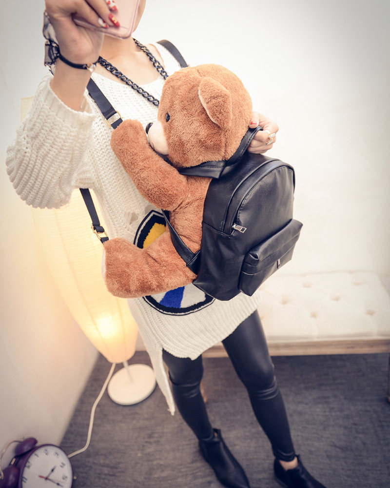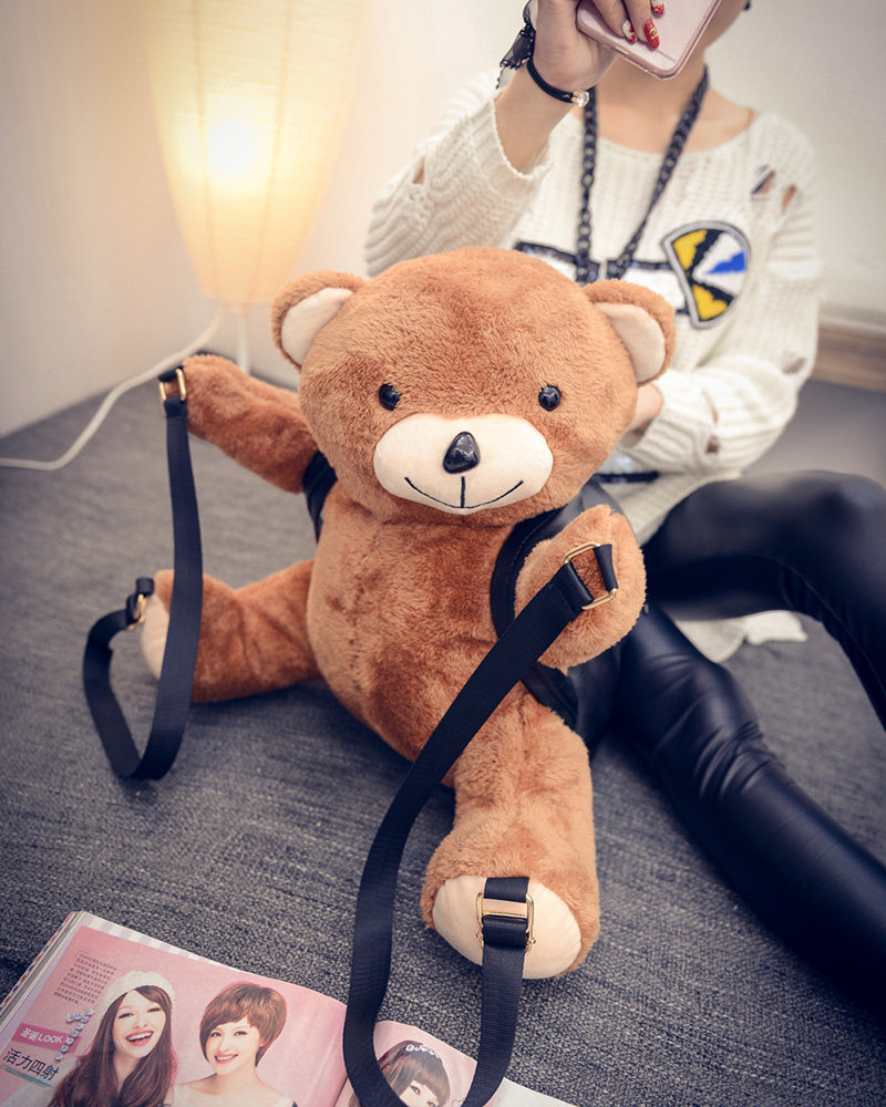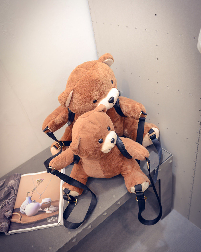 秋冬新款莫斯奇诺同款超萌可爱毛绒小熊双肩包真皮趴趴熊背包