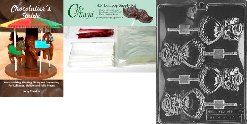 Cybrtrayd 45stK25RBk-C085 Angel Lolly Chocolate Mold with Chocolatier's Bundle of 25 Lollipop Sticks, 25 Cello Bags, 25 Red Twist Ties and Chocolatier's Guide