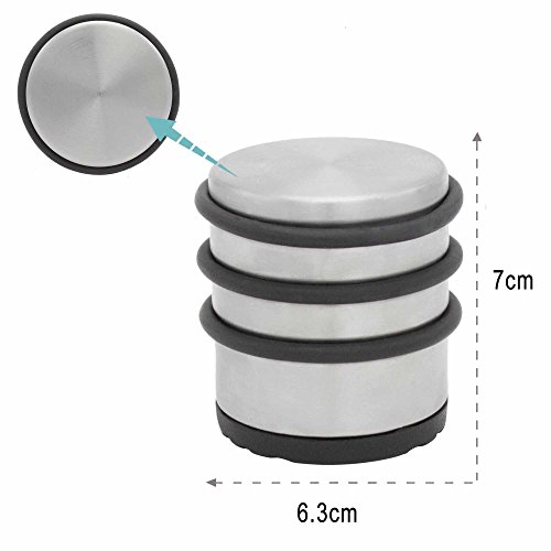 -. Binding : Kitchen -. Brand : CoZroom -. Color : silver -. EAN : 0603658253509 -. Feature : High quality doors stopper made of brushed stainless steel and black rubber treads to make the ideal door stopper. / We designed it to grip all types of floor included tile, stone wood and even carpet. And can be installed to stop glass, metal or wood door without damaging either. / The design of the door stopper permits your door, floor or walls not to be damaged. / Our door stopper with its design can hold door up to 2.8". / The size of the door stopper is 70X75MM for 1 kg. -. Label : CoZroom -. Manufacturer : CoZroom -. MPN : 2016-YUT -. PackageQuantity : 1 -. PartNumber : 2016-YUT -. ProductGroup : Home -. ProductTypeName : HOME -. Publisher : CoZroom -. Studio : CoZroom -. Title : CoZroom Decorative Stainless Steel Door Stopper with Rubber Rings, Slip-resistant Corrosion-resistant and Durable -. UPC : 603658253509