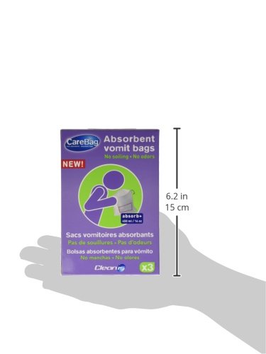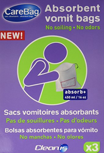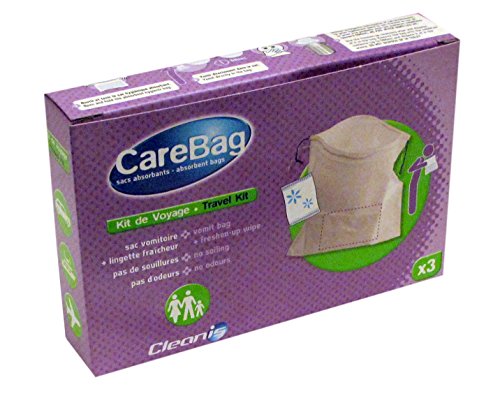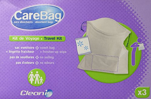 -. Binding : Health and Beauty -. Brand : Carebag -. Label : Cleanis inc. -. Manufacturer : Cleanis inc. -. ProductGroup : Health and Beauty -. ProductTypeName : HEALTH_PERSONAL_CARE -. Publisher : Cleanis inc. -. Studio : Cleanis inc. -. Title : Carebag Travel Kit - 3 Vomit Bags with Refreshing wipes