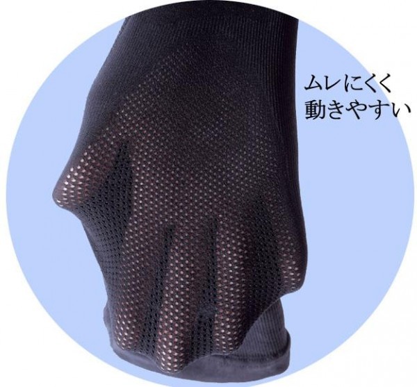 立ち上がる時、階段の昇降時、長時間の旅行に!!履くだけで「テーピングライン」がひざの大切な働きをする大腿四頭筋をサポートします。ひざに力が入りやすくなり、椅子やベッドからの立ち上がりなど日常的動作をサポートします。ひざ裏はメッシュで吸汗性に優れた繊維を使用しています。 |