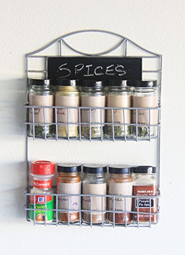 - Title : Wall Mounted 2-tier Rack with Chalkboard - Kitchen, Spices, Crafts Storage Organizer Basket Shelf