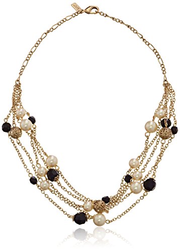 1928 Jewelry "Black and White" Gold-Tone Jet and Simulated Pearl Chain Necklace, 17"