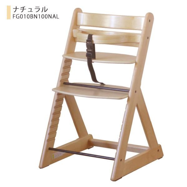| ずり落ち防止のベルトとガードが付いたチャイルドチェアです。成長に合わせて座面と足置きの位置を変えられるので、長く使用できます。 |