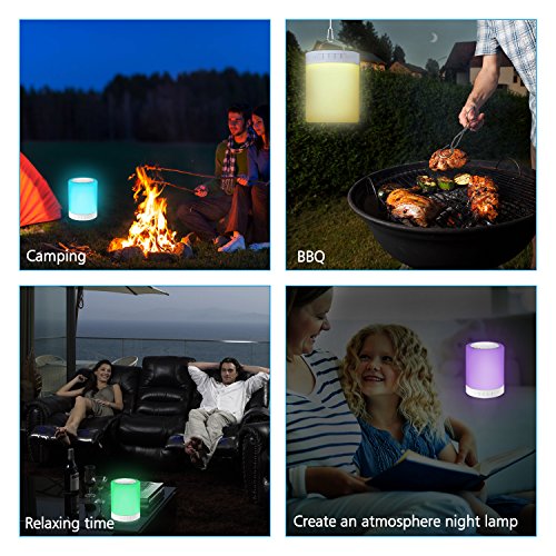 - INDOOR USE: bluetooth speaker for Yoga music paly, It's very suitable for telling stories to children before goes to bed., table lamps, in livingroom, kids/baby's room, reading room or as a party light/speaker. OUT DOOR USE: camping lamp, portable speaker, for camping, BBQ¡