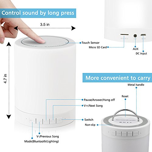- ALL IN ONE SPEAKER - Bluetooth speakers, Touch control LED mood lamp, wireless music player, hands-free speakerphone, table lamp, night light for children£¬Avoid a child waking up at night to be frightened.