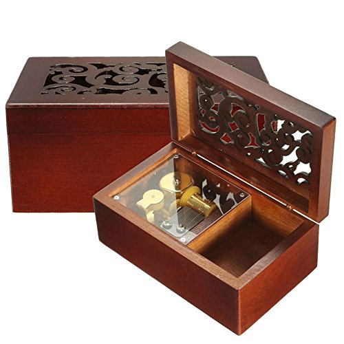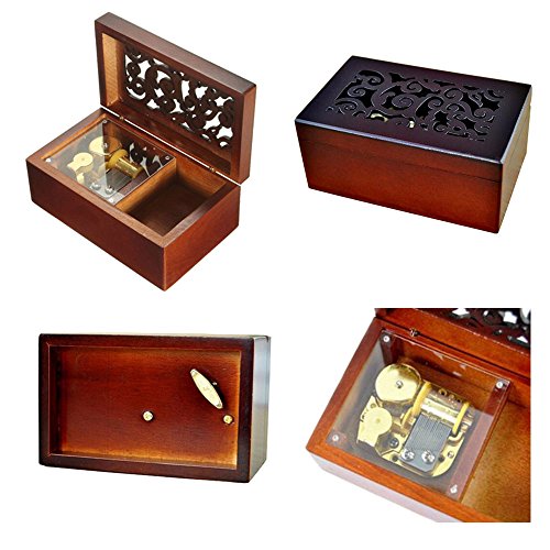 Antique Engraved Wooden Wind-Up Musical Box,Canon In D Musical Box,with Gold-plating Movement in,Rectangle