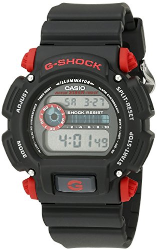 -. Binding : Watch -. Brand : Casio -. Color : Black/Red -. Department : womens -. EAN : 0079767062156 -. Feature : Round shock-resistant digital watch with electro-luminescent backlight, red pushers, and daily alarm / 48 mm resin case with mineral dial window and quartz movement with digital display / Features countdown alarm, hourly time signal, and two-year battery life / Nylon band with buckle closure / Water resistant to 200 m (660 ft) -. Label : Casio -. Manufacturer : Casio -. Model : DW-9052-1C4CR -. MPN : DW-9052-1C4CR -. PartNumber : DW-9052-1C4CR -. ProductGroup : Watch -. ProductTypeName : WATCH -. Publisher : Casio -. Studio : Casio -. Title : Casio Men's DW-9052-1C4CR G-Shock Black Watch with Red Pushers -. UPC : 079767062156