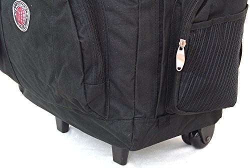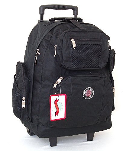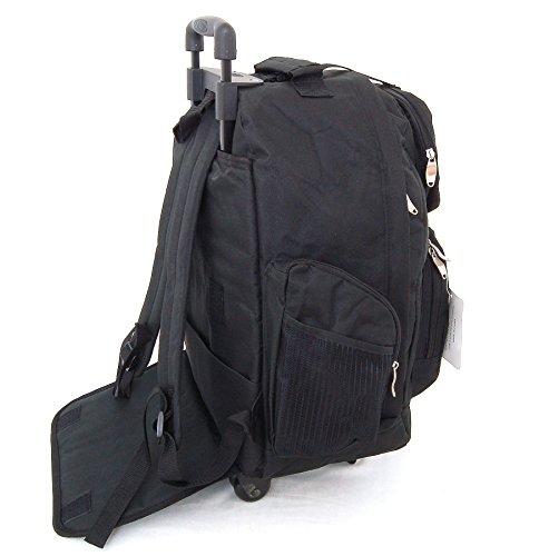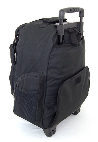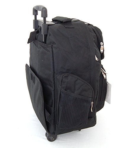 -. Binding : Misc. -. Brand : WT -. Color : Black -. Department : mens -. EAN : 0817137071991 -. Feature : Dimensions 18" x 13" x 7.7 / Retractable pulling handle / Backpack shoulder straps can be tucked away when pulling. / Multiple pockets to best organize what you want to carry. / Easy rolling wheels -. Label : TW -. Manufacturer : TW -. Model : 1318-Black -. MPN : 1318-Black -. PackageQuantity : 1 -. PartNumber : 1318-Black -. ProductGroup : Apparel -. ProductTypeName : LAGE -. Publisher : TW -. Size : One Size -. Studio : TW -. Title : TW 18" Rolling Back Pack on Wheels With Retractable Handle Black -. UPC : 817137071991
