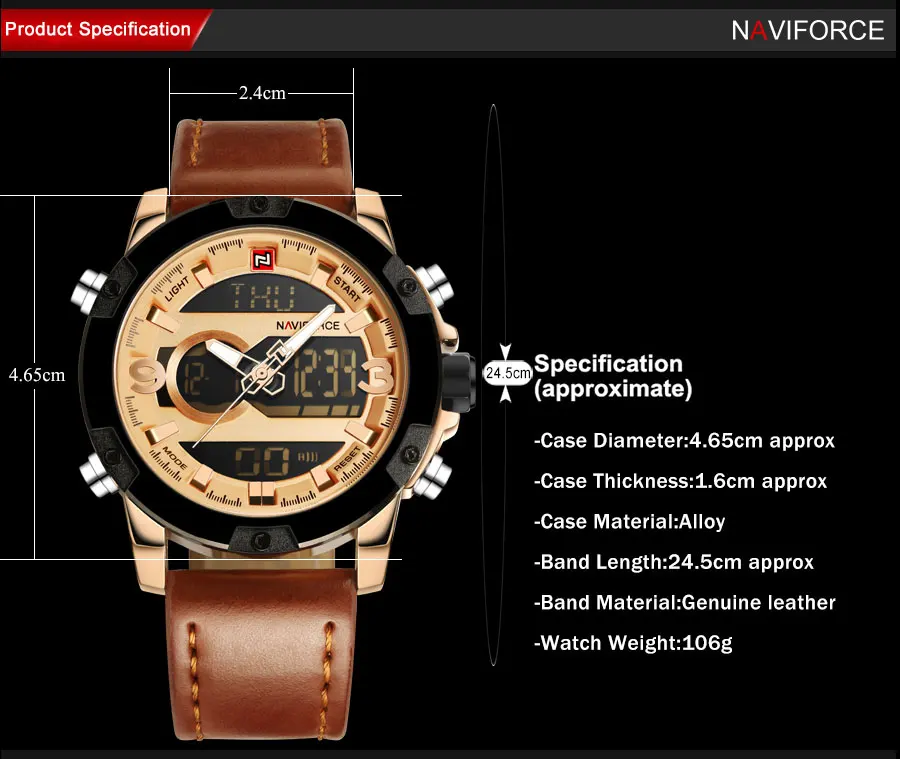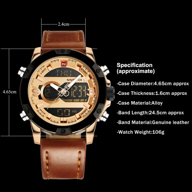 Watch Design:Analog LED Digital,Dual Display,Japan Movement