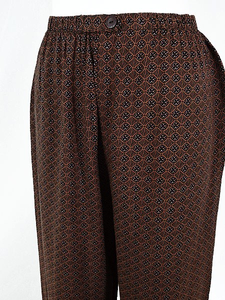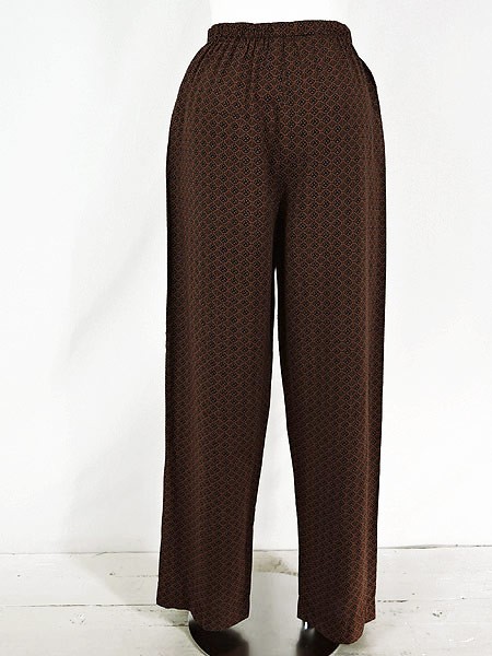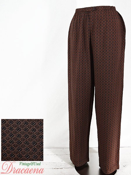 Ladies ブランド カラー茶・黒 メール便不可 コンディション★★★ 素材レーヨン 表記サイズS 実寸サイズ 着丈 100 cm ウエスト 60cm 〜 74cm (24インチ〜29インチ) レングス(股下) 28 インチ(71 cm) 股上 32 cm 太もも幅 30 cm 裾幅 21 cm ※ウエスト・ヒップ以外は平置き採寸【code】#b