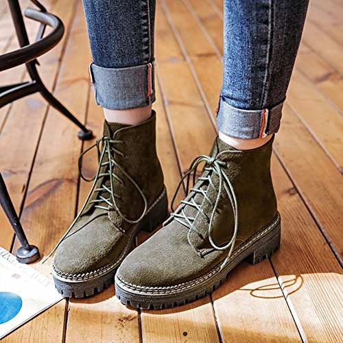(Mofri)/Women's/Boots/DIRECT FROM USA/Mofri Women's Casual Block Medium Heel Platform Short Martin Boots Round Toe Faux Suede Lace up...