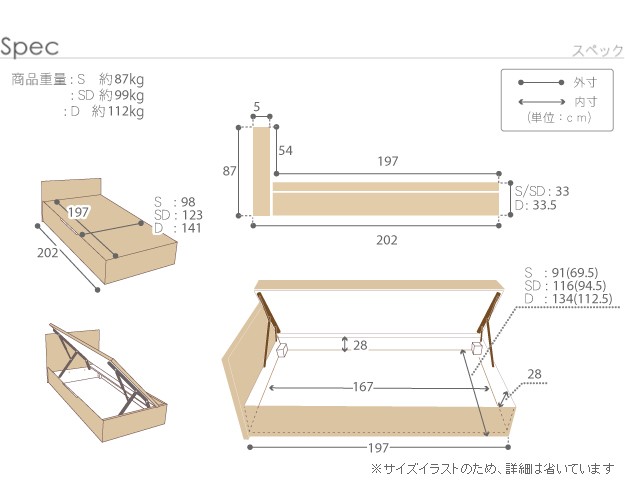 外寸:幅141x奥行202x高さ87cm/重量:約112kg