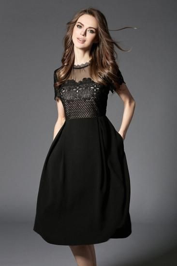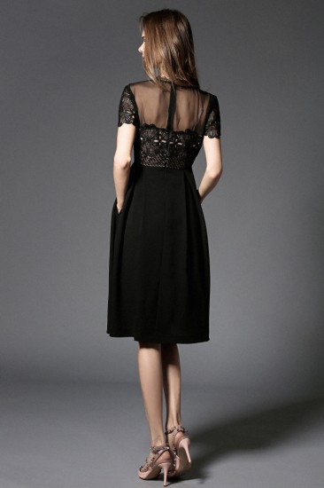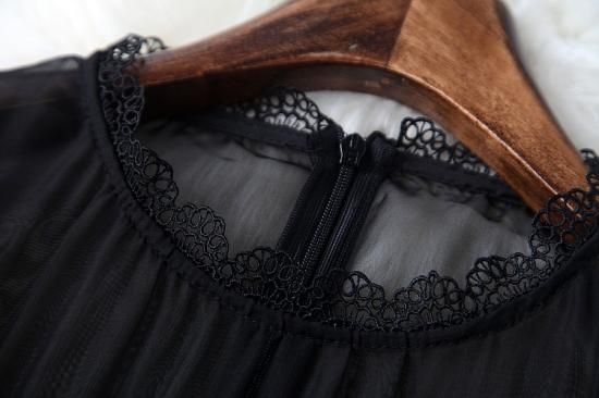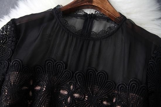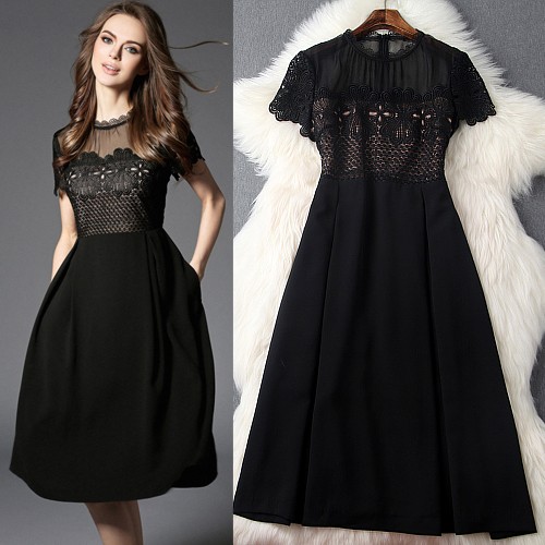 パーティードレス ミモレ丈 ワンピース 半袖 透け感 シースルー 丸花レース 大人 上品 可愛い お呼ばれ デート ブラック レッド drgz2309